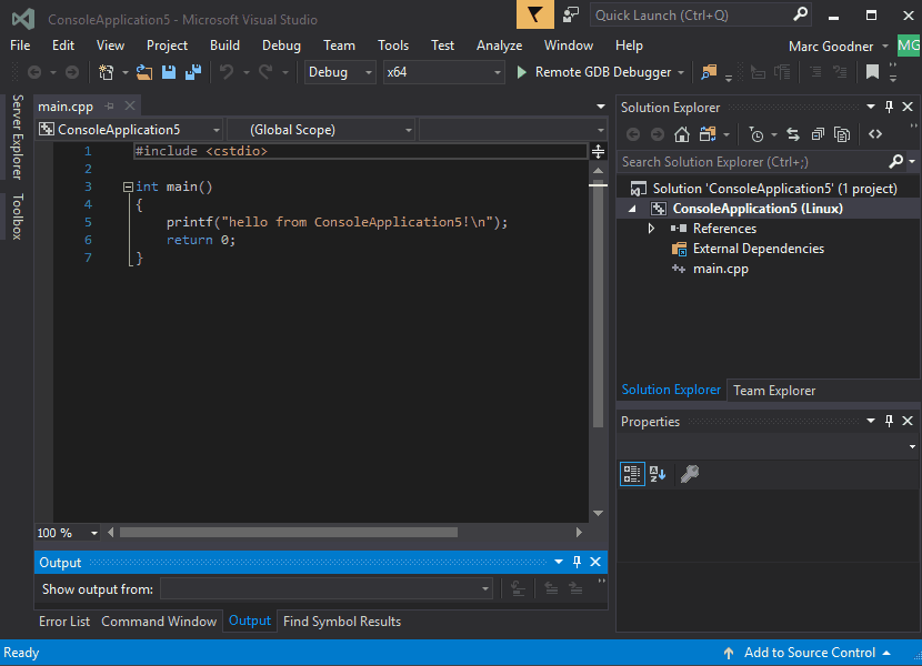 With this workload you can author C++ code for remote servers, desktops and devices. You can manage your connections to these machines from within VS. VS will automatically copy and remotely build your sources and can launch your application with the debugger. Our project system supports targeting specific architectures, including ARM.